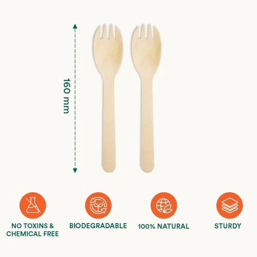 Our premium quality sporks are designed to be ultra-strong for all your dining needs. Made from birchwood, 100% plastic-free and compostable. A 100% eco-friendly choice for our eco-warriors.